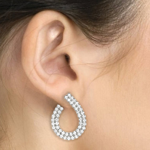 Silver Plated and Made with a Double Row of Super Sparkly Cubic Zirconia Stones * Unique & Flexible * Designed for the Open End to be Worn Under the Ear Lobe for a Seamless Look* Surgical Steel Posts & Disc Backs