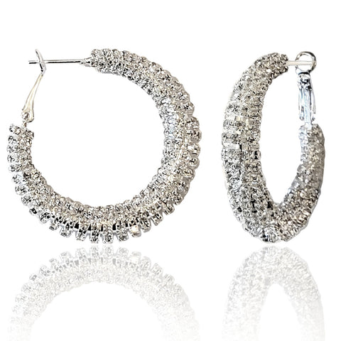40mm Silver Plated Cluster Crystal hoop made with Surgical Steel Posts with Spring Clip * CE27404S