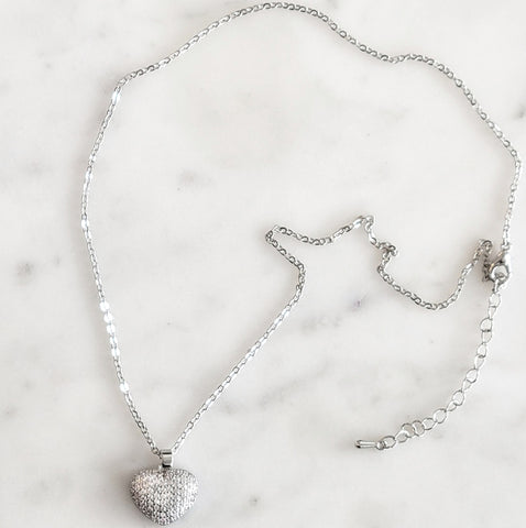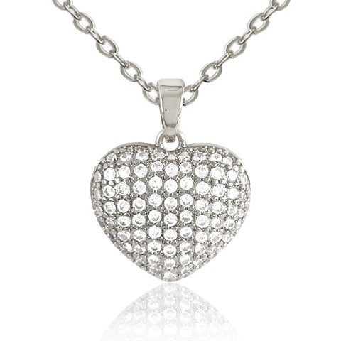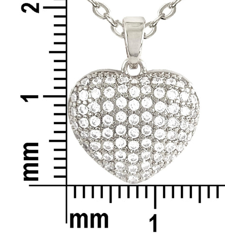 Rhodium Silver Plated Cubic Zirconia Micro Pave Cluster Heart Necklace * Made with High Quality CZ's * Pendant Comes on an 16-18 Adjustable Chain * Made with our Anti Tarnishing Process for Lasting Wear! Great for Valentine's Day, Birthdays, Christmas Holidays, etc.. Sparkly!! * Packaged in a Gift Box!
