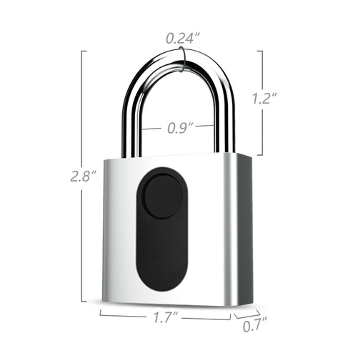 【2.8 X 1.7 X 0.7 inches lock size】The fingerprint lock is made of zinc alloy and stainless steel. The fingerprint lock is small and classic, measures 2.8 X 1.7 X 0.7 inches, 0.4 pounds