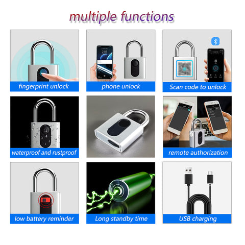 【Fingerprint Padlock, Bluetooth Lock APP Remote Unlock, Smart Padlock,Fingerprint Lock,Keyless Lock】Suitable for luggage,suitcase, backpack, bike, school locker, gym Locker Lock. Install app by scanning qr code on product. Friendly to kids and elderly, your finger is the key which discourages thieves. Please note: Any skin contact can open the lock in the factory mode, please enter the administrator's fingerprint according to Installation video before using. Registers up to 60 fingerprints