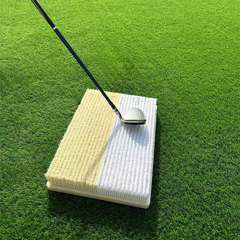 【2-in-1 Golf Simulation Bunker Mat】The bunker mat is thoughtfully designed with two distinct sections: a white area simulating shallow bunkers and a yellow area mimicking deep bunkers, catering to various swing training needs. The unique simulation bunker brush design accurately replicates the sensation of hitting from a bunker, allowing you to experience precise feedback with every swing