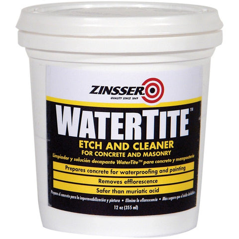 Clean and prep concrete, stone, brick, tile and galvanized metal with Rust-Oleum Zinsser WATERTITE Etch and Cleaner for Concrete and Masonry. This solution quickly restores a stain-free surface and also preps it for painting, patching or waterproofing.