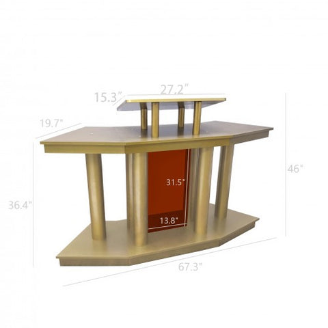 ¡¾Top of the Line Wide Size Pulpit¡¿ Measurement: 63.8W x 46.5H x 23.8D. The spacious angled reading surface comes with book stopper, measures 33.5 x 19.3 D. Podium weighs 101 lbs.